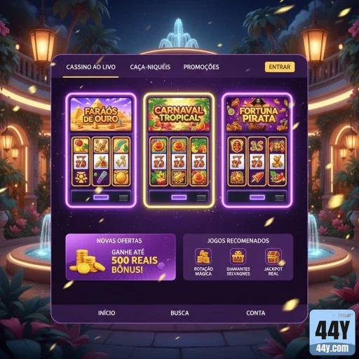 Cadastre-se em menos de 1 minuto com e-mail, senha e CPF. Após o primeiro depósito (mínimo R$20), o bônus de boas-vindas é creditado automaticamente. O 44y oferece bônus de até R$10.000 nos primeiros depósitos mais giros grátis em slots selecionados.